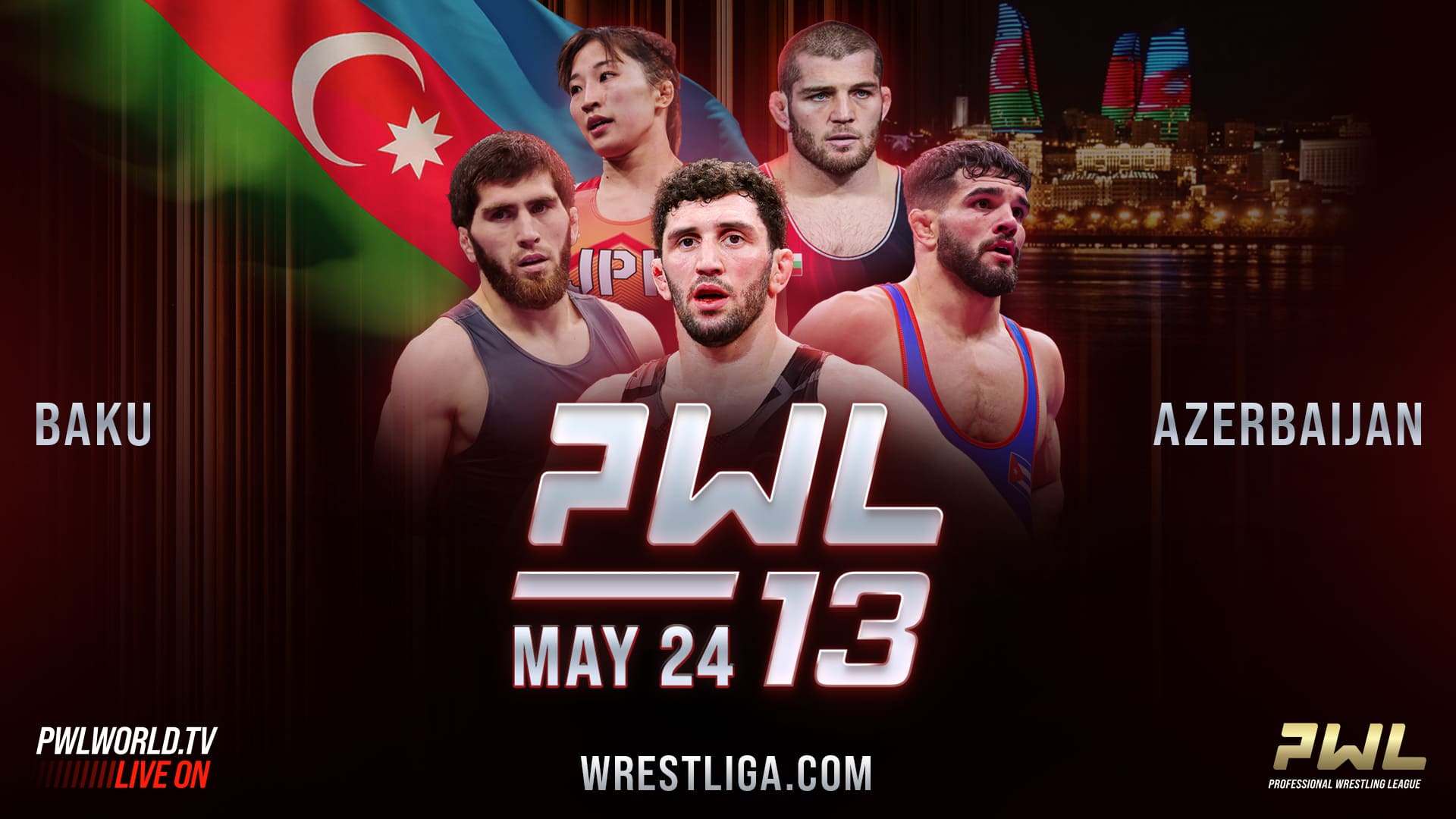 PWL 13 World Series will take place in Baku. The tournament will feature Olympic champions including Zaurbek Sidakov, Razambek Zhamalov, Zaur Uguev, Magomed Ramazanov, Yui Susaki, and Luis Alberto Orta Sanchez. Venue and schedule details will be announced later.