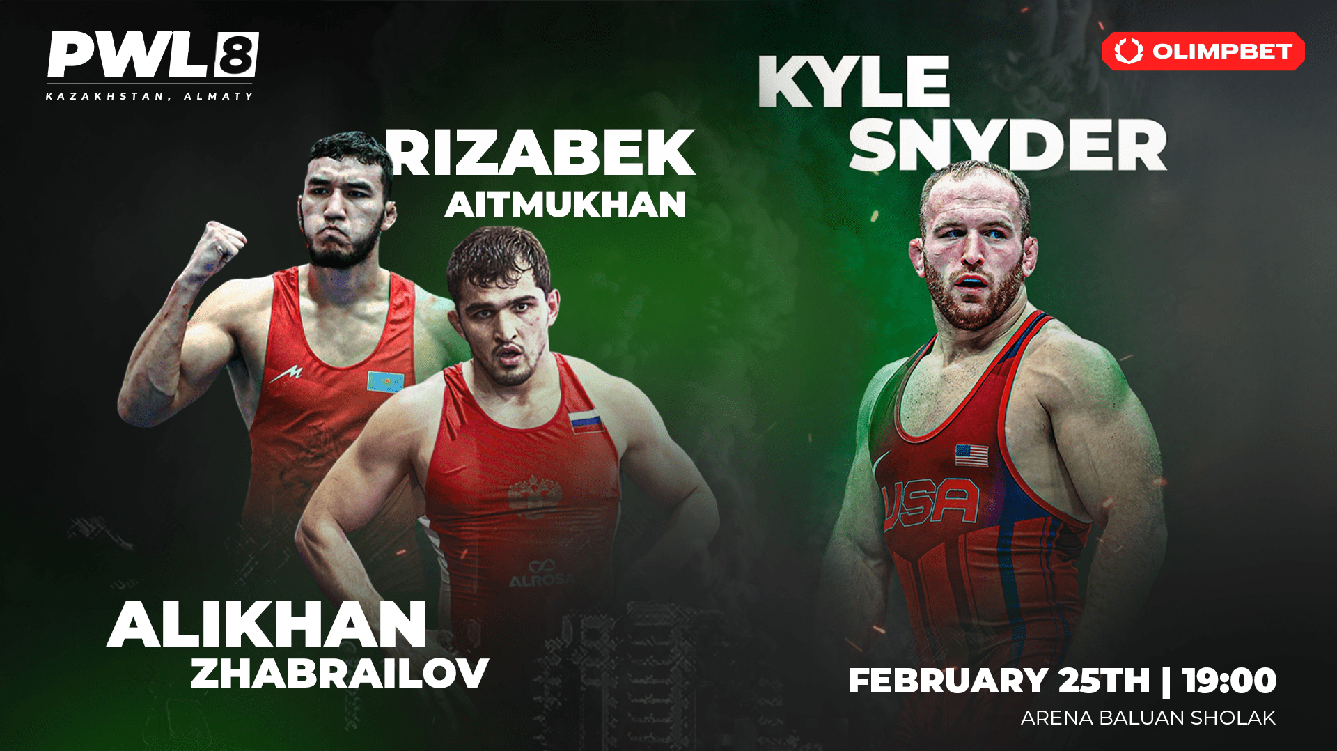 PWL 8 пройдет 25 февраля в арене «Балуан Шолак» (Алма-Ата, ул. Абая, 44) в 19:00. Соревнования в полном объеме будут транслироваться на международном борцовском стриминговом сервисе WRESTLINGTV.RU.